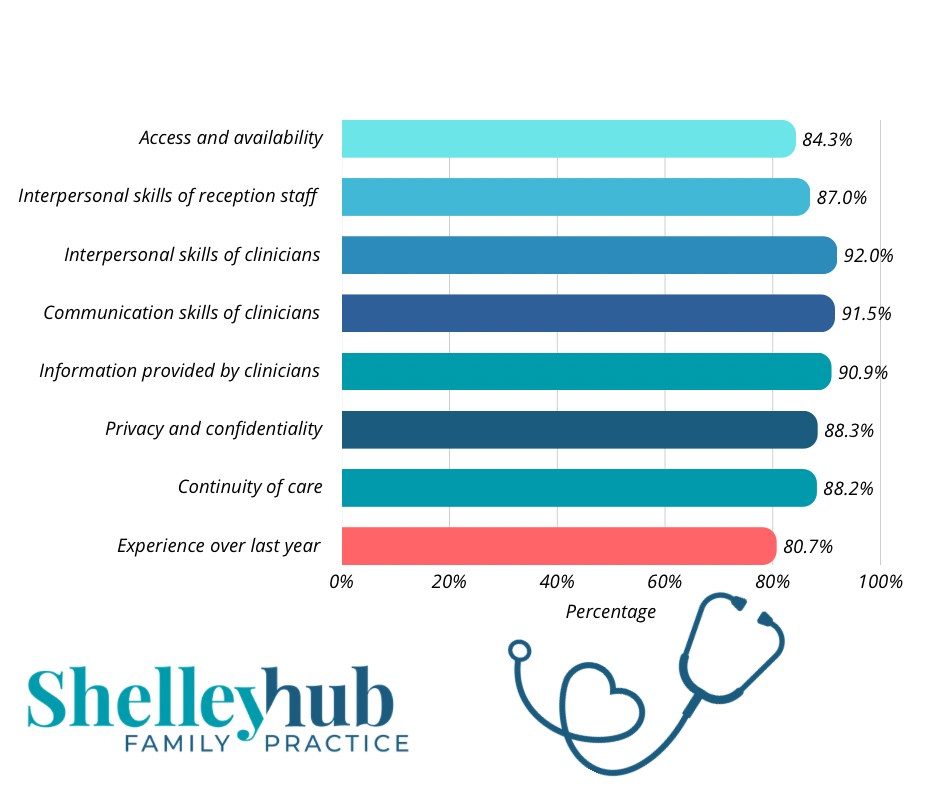 • most of our patients are happy with the level of healthcare they receive at our practice (around 90%)